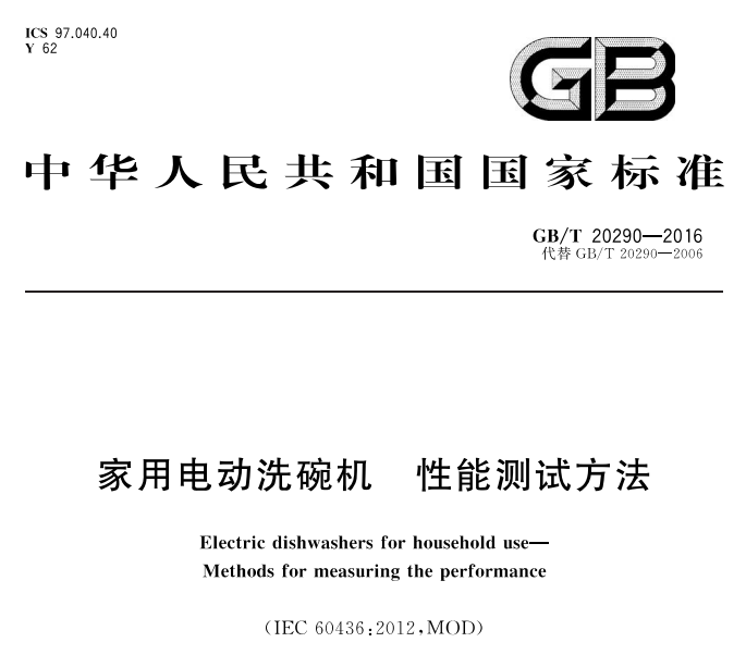 Electric dishwashers for household use —— Methods for measuring the performance- 应用原理